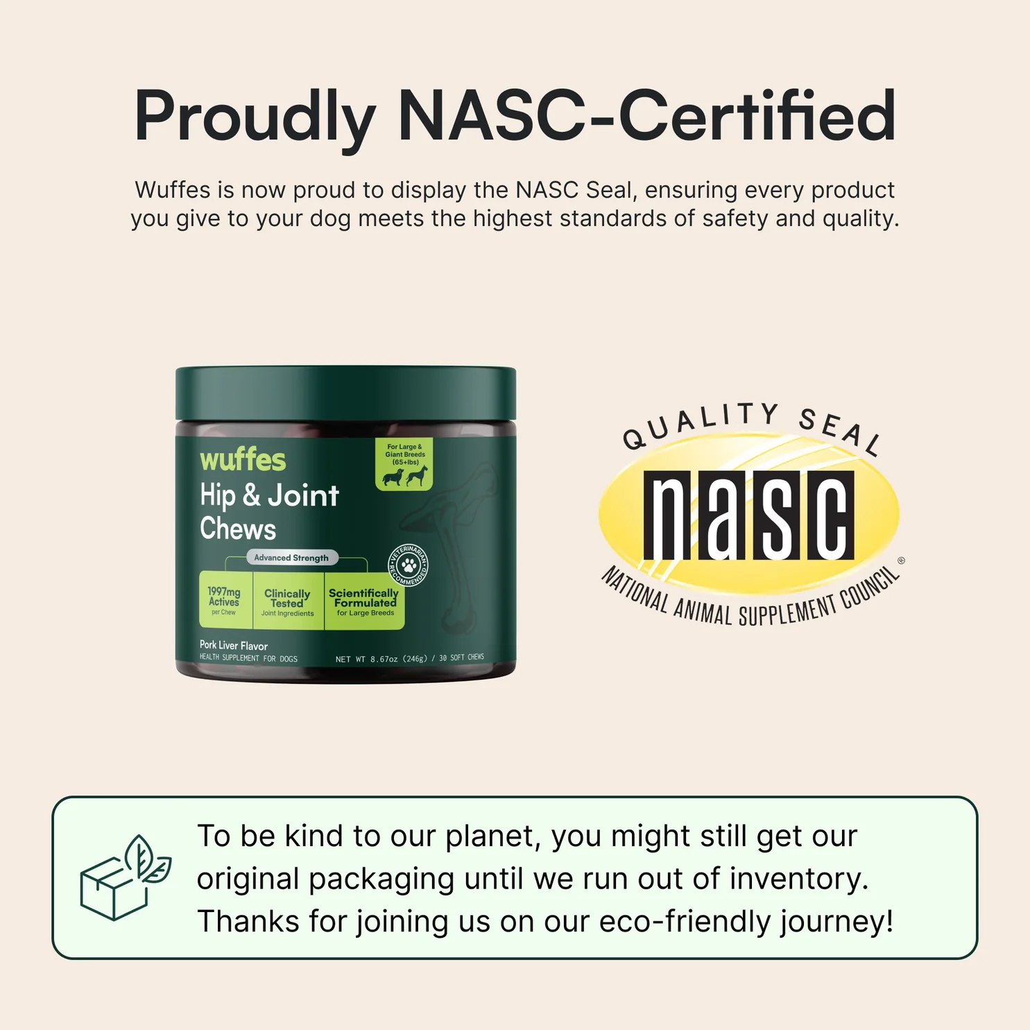 Wuffes is now proud to display the NASC Seal, an industry mark of trust and transparency. Our certification means that every product you give to your dog meets the highest standards of safety and quality. Learn more about what this seal means for you and your pet's health.